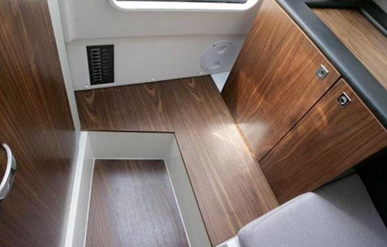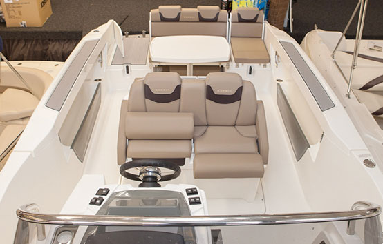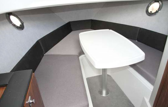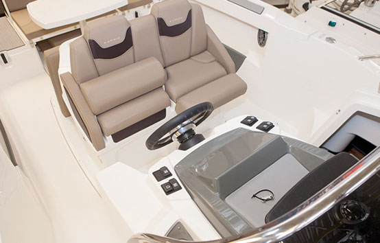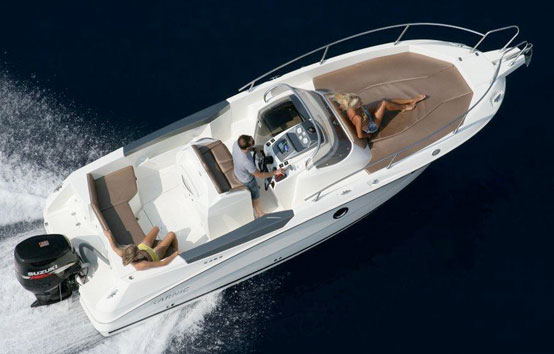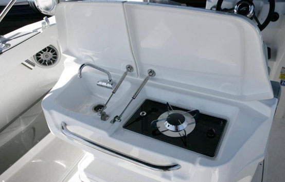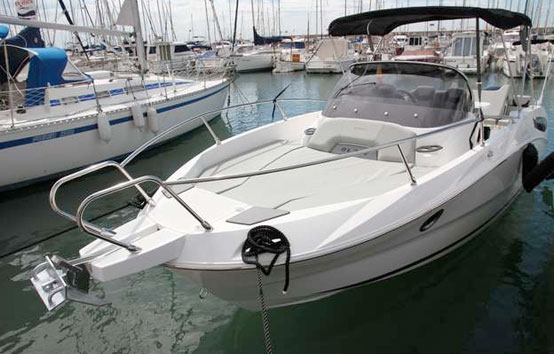 Molinete eléctrico, VHF, GPS, Stereo CD, Nevera de hielo, Toldo de sol (bimini), Escalera de baño, Ducha en bañera, Cargador de batería, Mesa para comer en popa, Amplio solarium en proa.