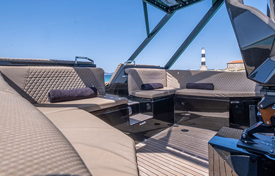 2 frigoríficos, 2 duchas, cubierta de teca, escalera de baño, equipo de sonido, hélice de proa, piloto automático, gps/chart plotter, toma USB, WC eléctrico.